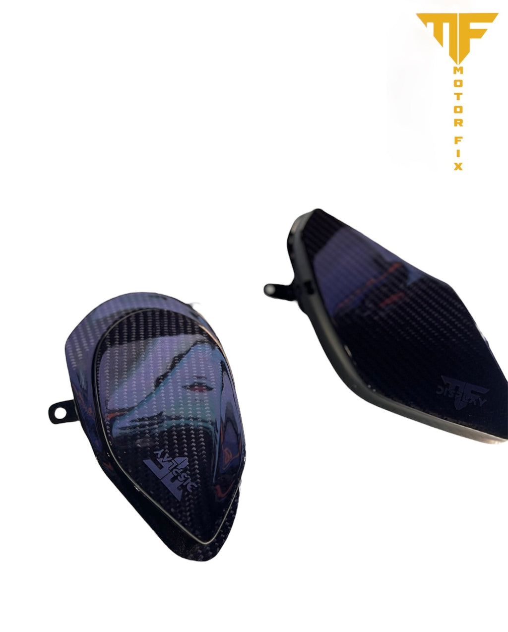 Revamp your motorcycle with our innovative carbon fiber headlight, equipped with a dual-light system offering both white and yellow beams. This upgraded headlight not only enhances your bike's style but also improves visibility. It is the first and only product of its kind in the market, making it a unique and sought-after feature.